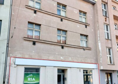 Disp: Prostor je tvořen 2 místnostmi, jedna jako hlavní prosvětlena dvěma výlohami do hlavní komunikace, v mezipatří další místnost jako zázemí , kde se nachází menší kuchyňská část s umyvadlem, toalety.